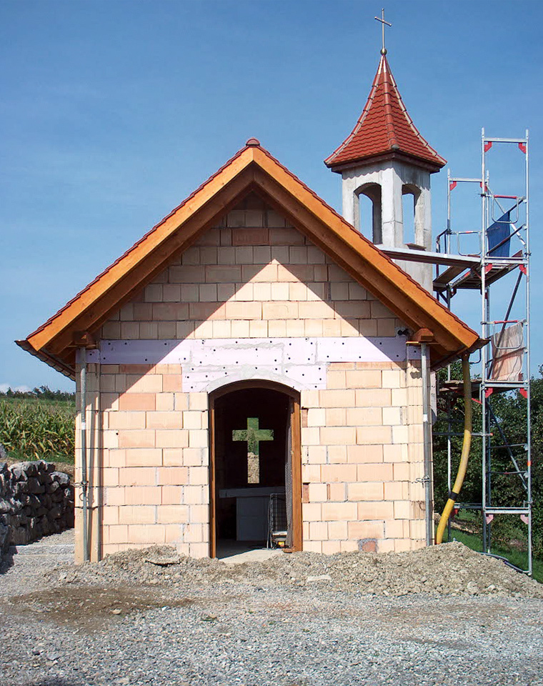 Ausgeführte Arbeiten: Umbau des bestehenden Gebäudes, mit Anbau durch zweischalige Wände, einziehen von Wänden und Einbau von Fertigteiltreppen, sowie nachträglicher Einbau der BodenplatteArchitekt: Kopper Architekten, Esslingen Baujahr: 2007 St. Benedikt Kapelle, Friedrichshafen-Unterraderach