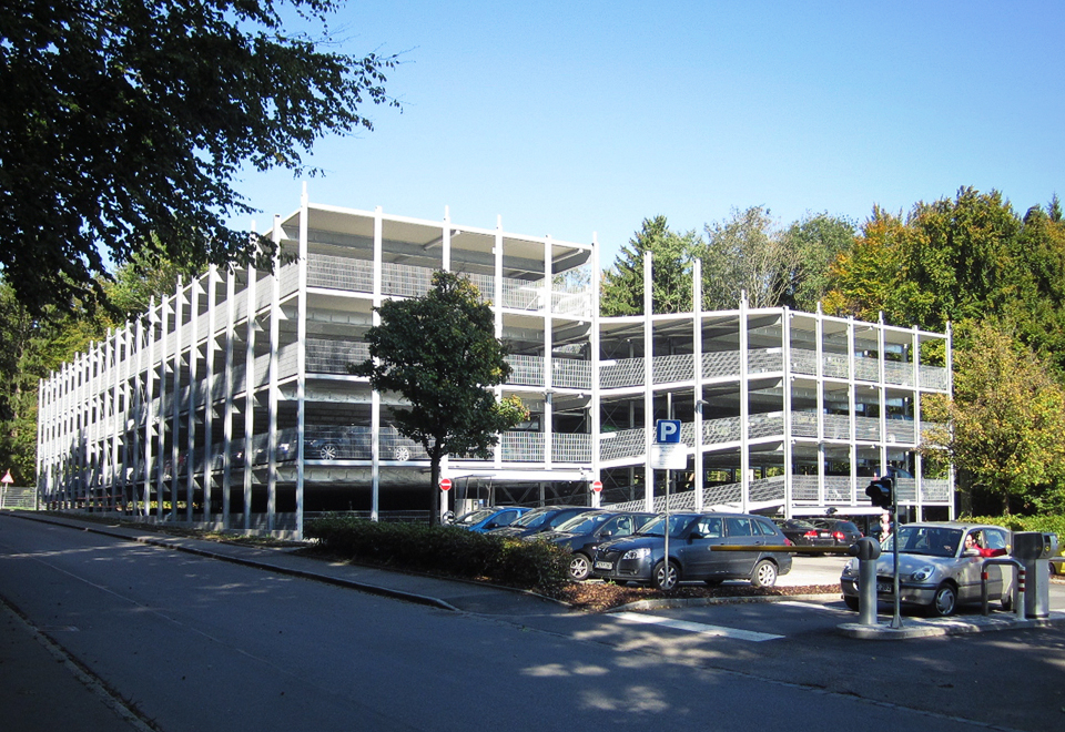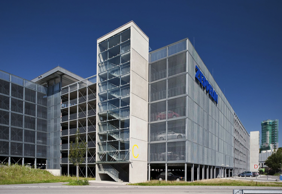 Ausgeführte Arbeiten: Rohbauarbeiten, Erdarbeiten Außenanlage, Sichtmauerwerk im Bürobereich, StahlbetonarbeitenGeneralunternehmer: Goldbeck Süd, Stuttgart Baujahr: 2010 Zeppelin Parkhaus, Friedrichshafen