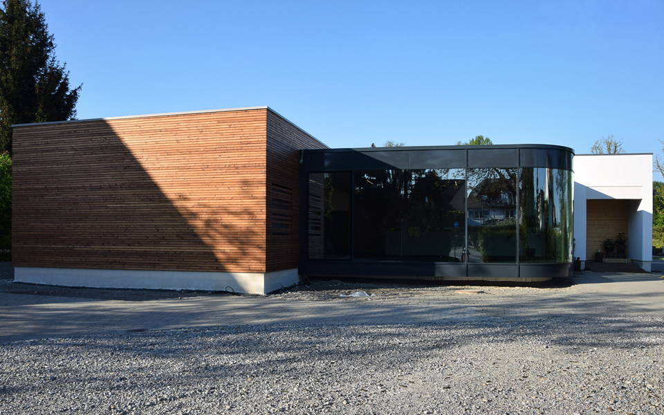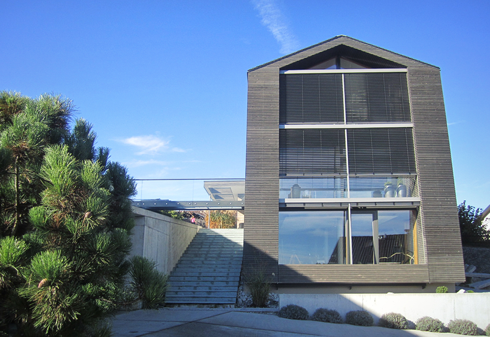 Ausgeführte Arbeiten: RohbauarbeitenArchitekt: Architekturbüro Hütz, Markdorf Baujahr: 2005 Einfamilienhaus mit Architekturbüro, Friedrichshafen