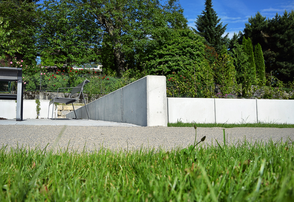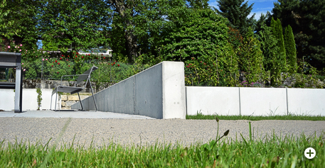 Ausgeführte Arbeiten: Sichtbetonmauer für Toranlage inkl. FundamentarbeitenArchitekt: Architektur + Freiraum, Ravensburg Baujahr: 2015 Garagenerweiterung, Kehlen