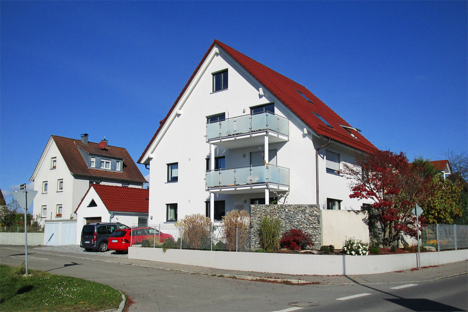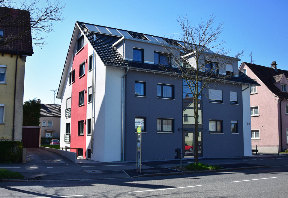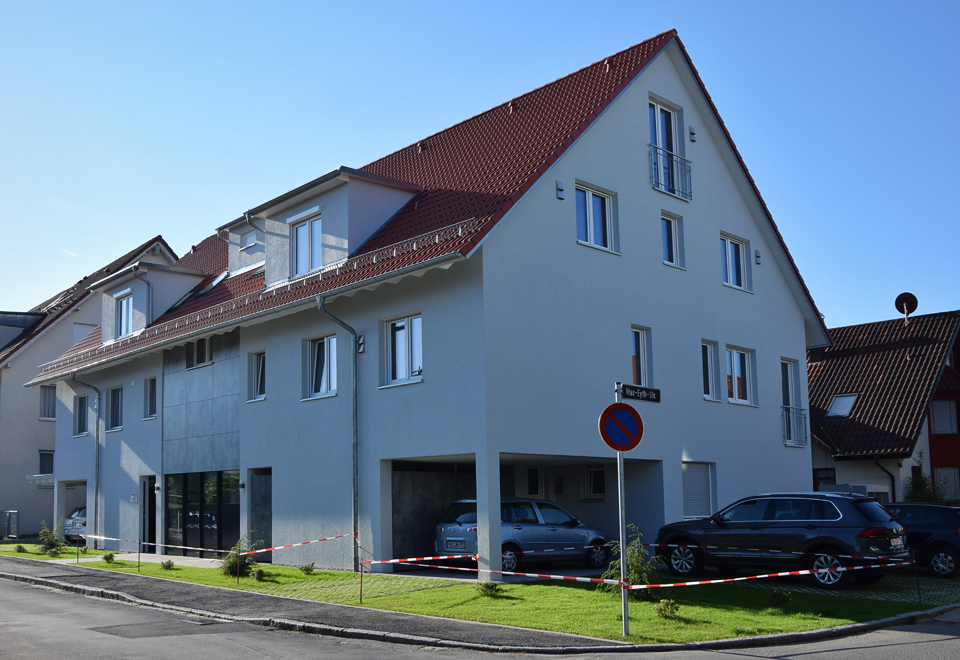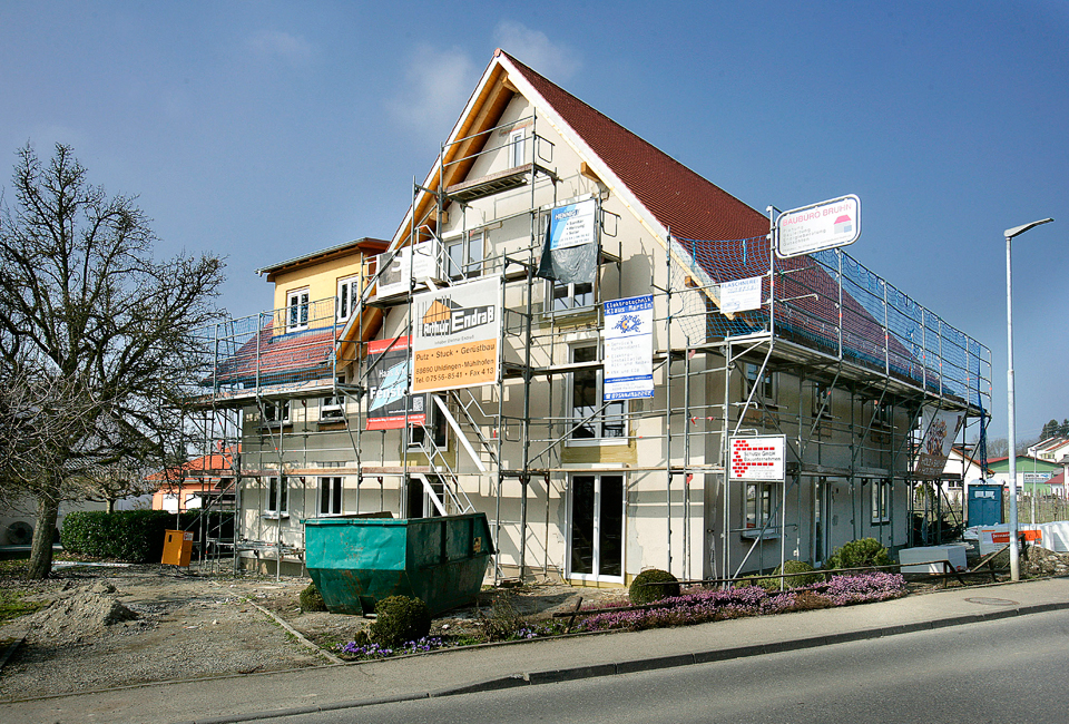 Ausgeführte Arbeiten: RohbauarbeitenArchitekt: Achim Hildebrand, Friedrichshafen Baujahr: 2005 Wohnhaus mit Gewerbeeinheit, Friedrichshafen