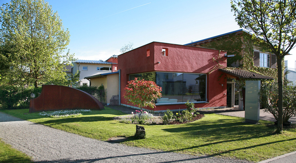 Ausgeführte Arbeiten: RohbauarbeitenBauleitung: Achim Hildebrand, Friedrichshafen Baujahr: 2006 Einfamilienhaus mit Architekturbüro, Friedrichshafen