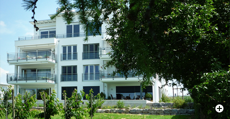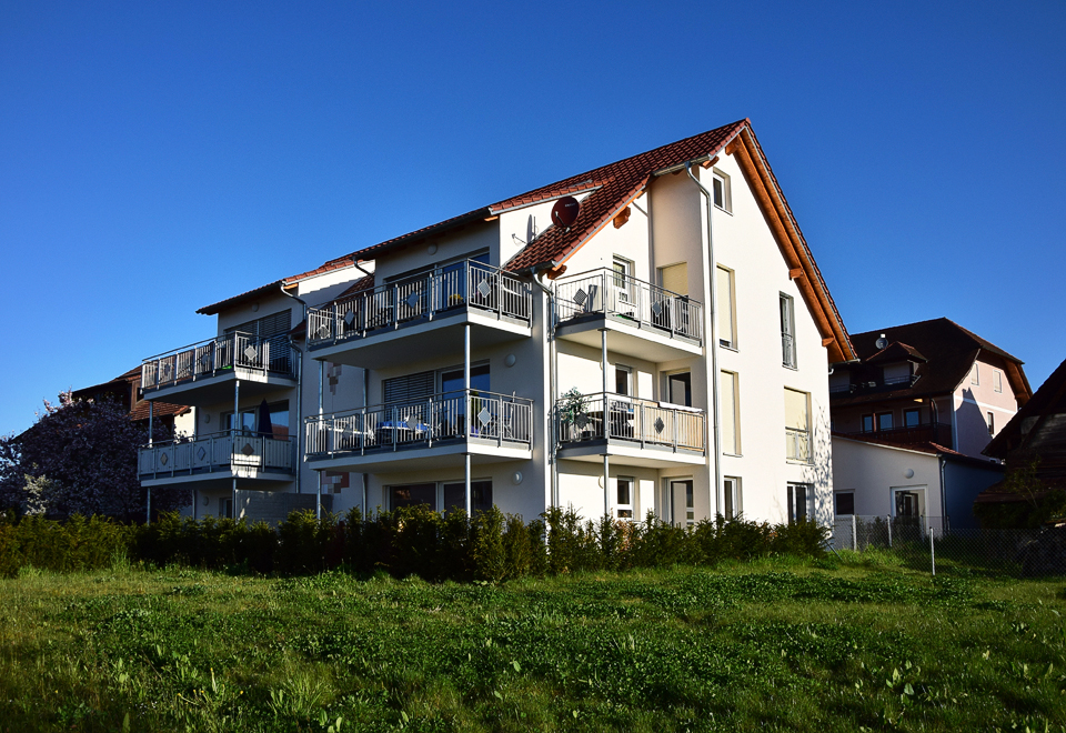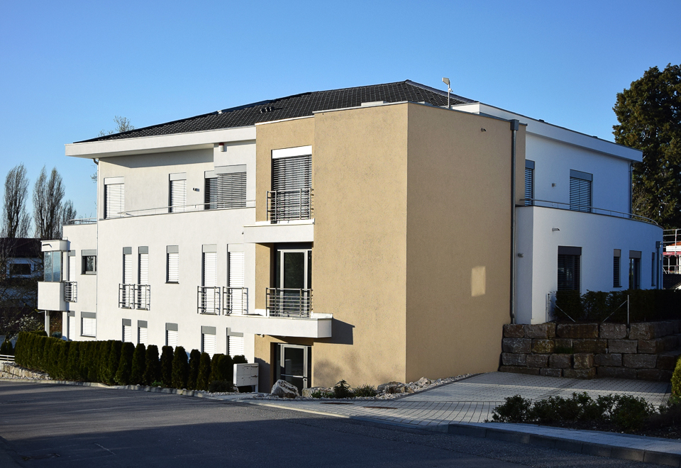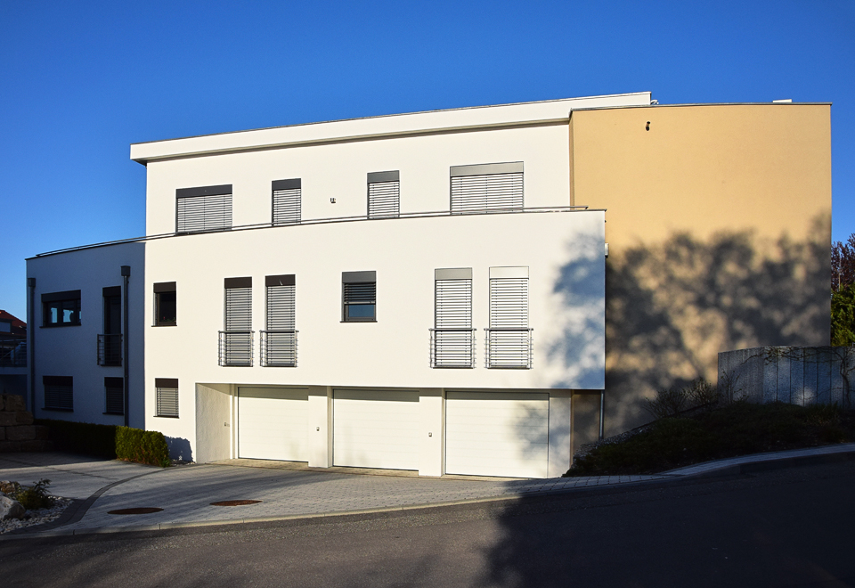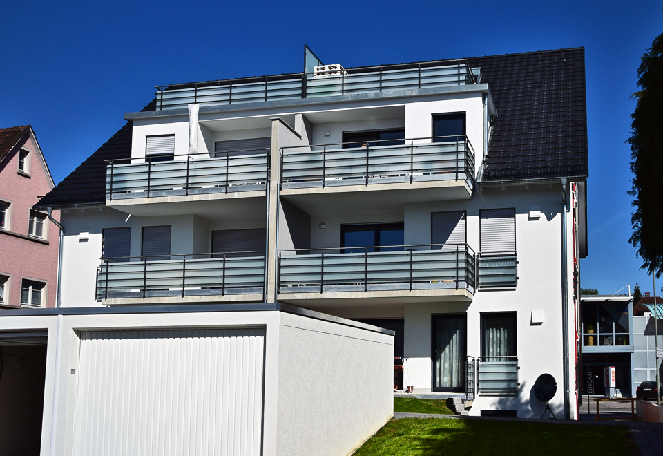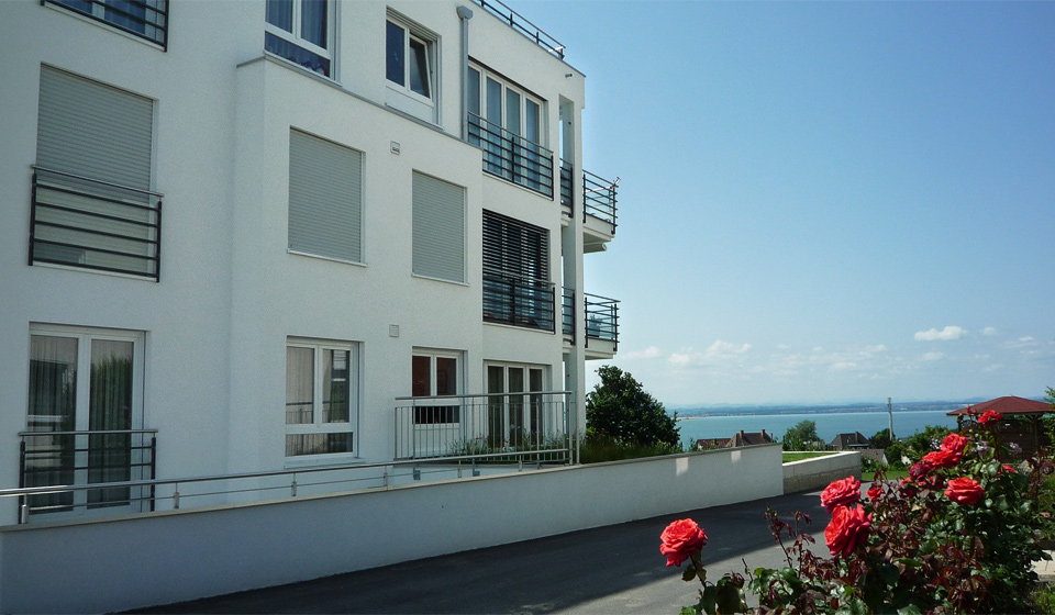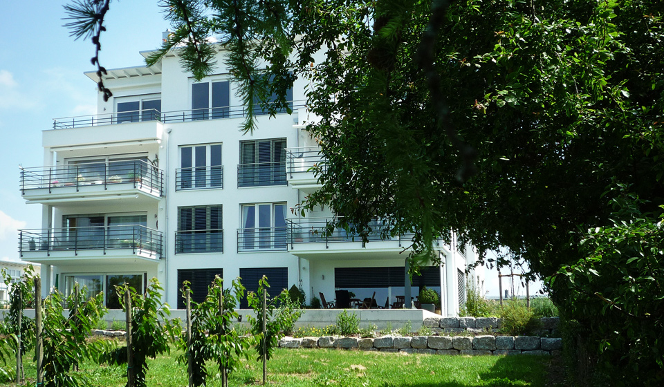 Ausgeführte Arbeiten: Rohbauarbeiten mit SichtbetonstützwändenArchitekt: Architekturbüro Peter Riether, Eriskirch Baujahr: 2013 6-Familienhaus mit Tiefgarage und Garagen, Hagnau