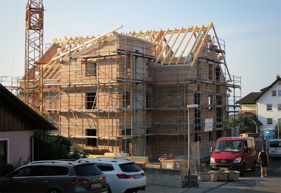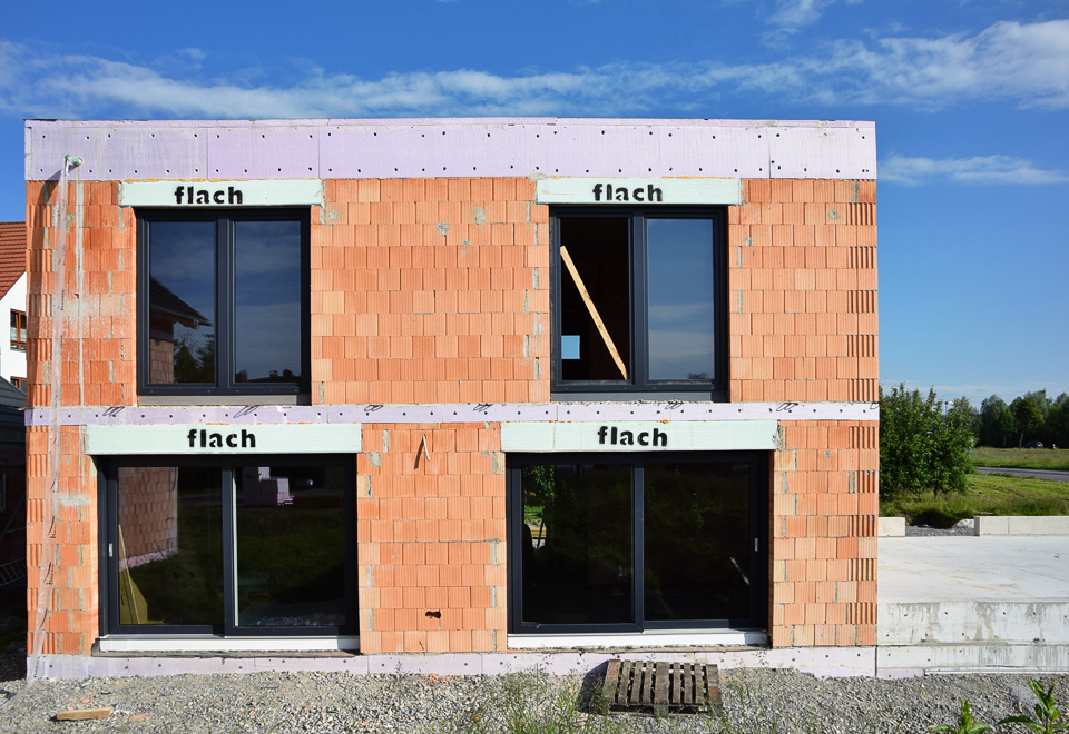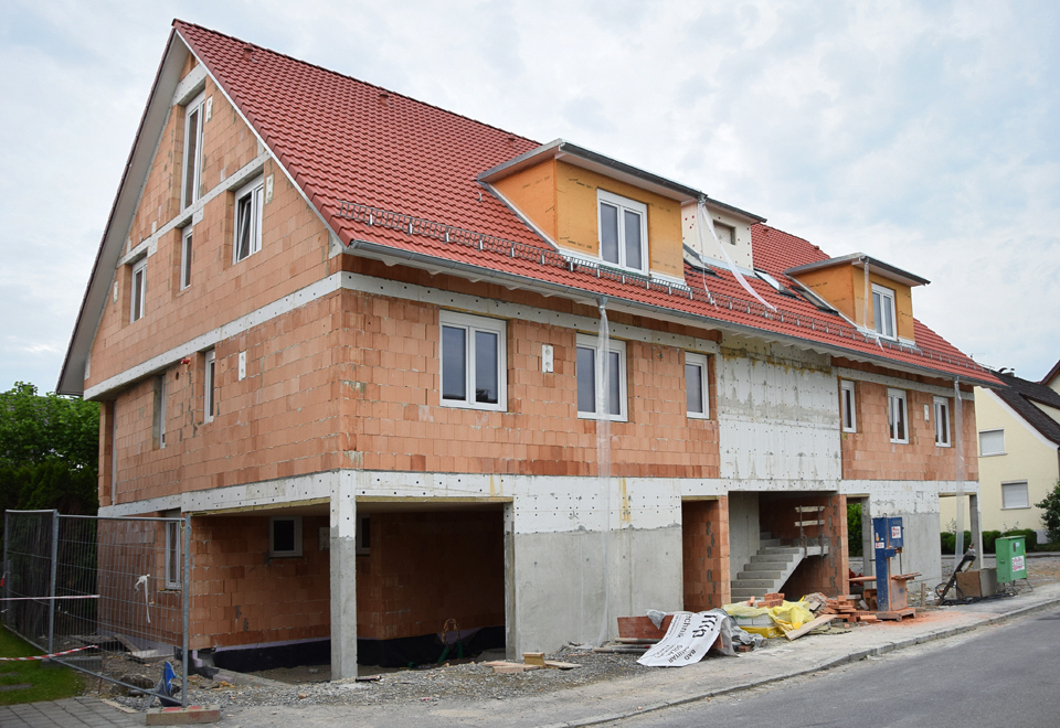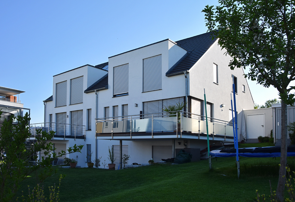 Ausgeführte Arbeiten: RohbauarbeitenArchitekt/Bauleitung: Baubüro Bruhn GmbH, Kluftern Baujahr: 2013 2 Doppelhaushälften, Friedrichshafen