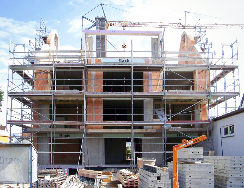 Ausgeführte Arbeiten: Erdarbeiten, Entwässerung, zwei separat ausführte Wohnhäuser mit einem WU-Keller, dabei wurde eine Kellerwand einseitig gegen die andere Kellerwand geschalt. Große ausladende Stahlbetonbalkone, unterstützt mit verzinkten Stahlstützen, Mauerwerk mit Dämmziegeln und Hochlochziegeln, versetzen von Stahlbetonfertigteiltreppen, Stahlbetonarbeiten wie Keller, Decken und RinggurteArchitekt: Achim Hildebrand, Friedrichshafen Statik: Ingenieurbüro Hack, Tettnang Baujahr: 2011 2 Mehrfamilienhäuser mit Tiefgarage, Immenstaad
