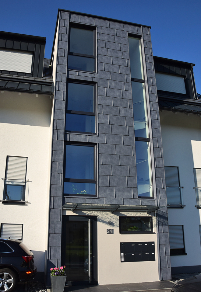 Ausgeführte Arbeiten: RohbauarbeitenArchitekt: Plösser Architekten, Friedrichshafen Bauträger: Intecta Bauentwicklung GmbH, Ravensburg Baujahr: 2014 Fotos: Michael Häfner 6-Familienhaus, Friedrichshafen